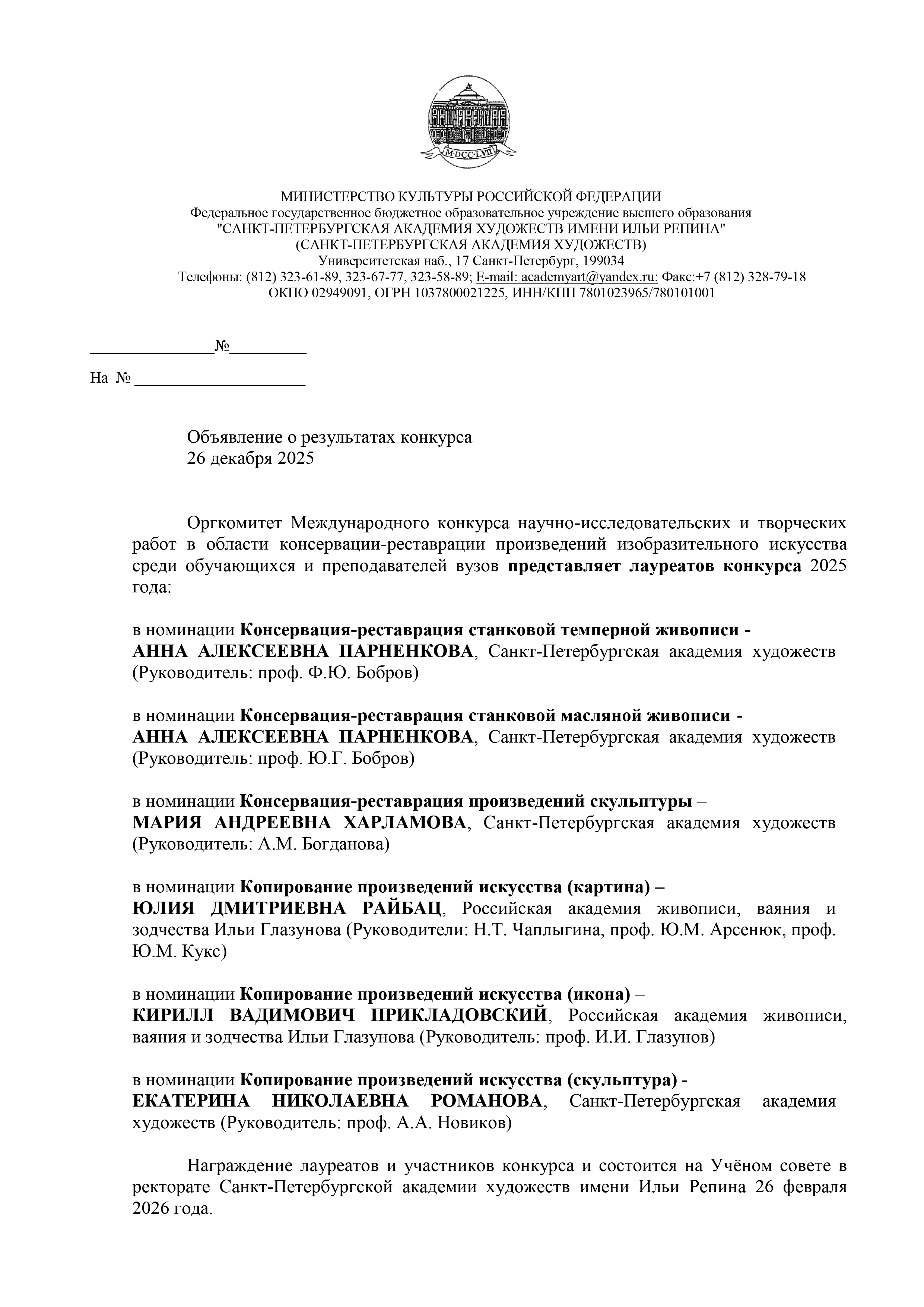 Международный конкурс научно-исследовательских и творческих работ в области консервации-реставрации произведений изобразительного искусства